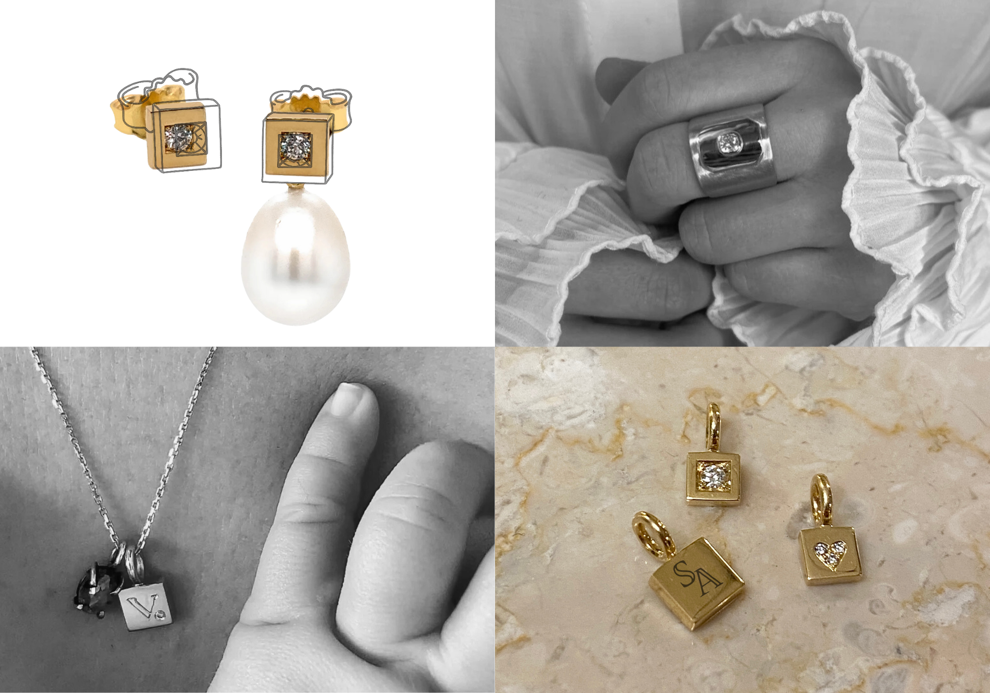 Halskæde med squarevedhæng med diamanter i hjerte, no.1