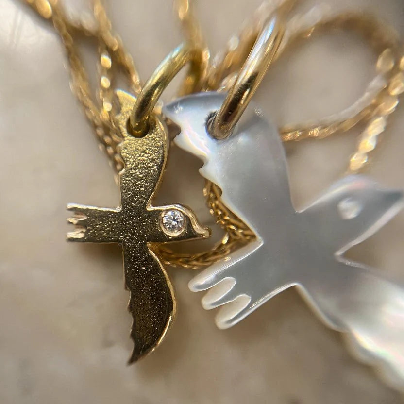 Bird No.1 og No.2 med diamanter i Palme-dia halskæde