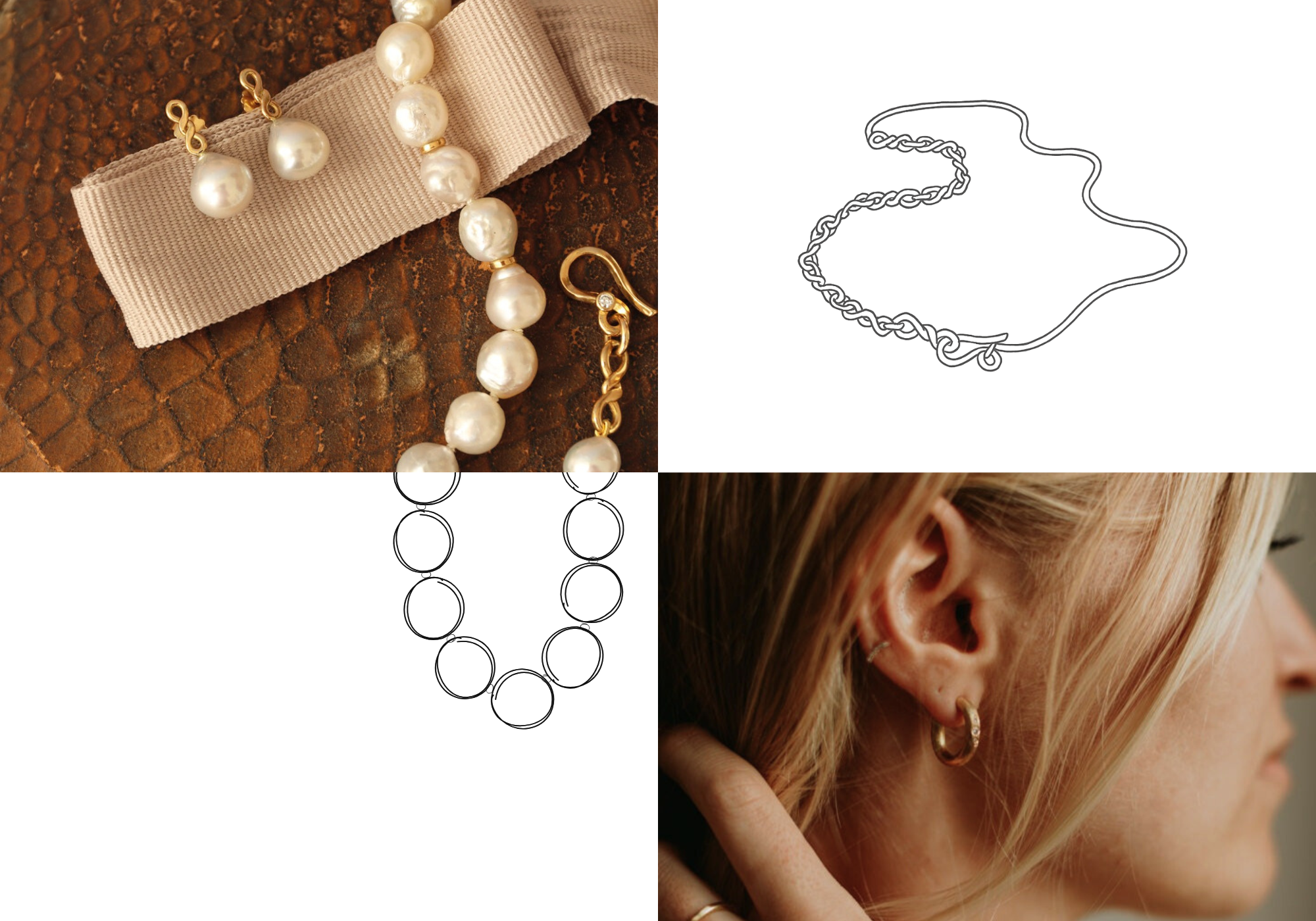 Lange ørestikker med månesten, brune diamanter og perler, Unika