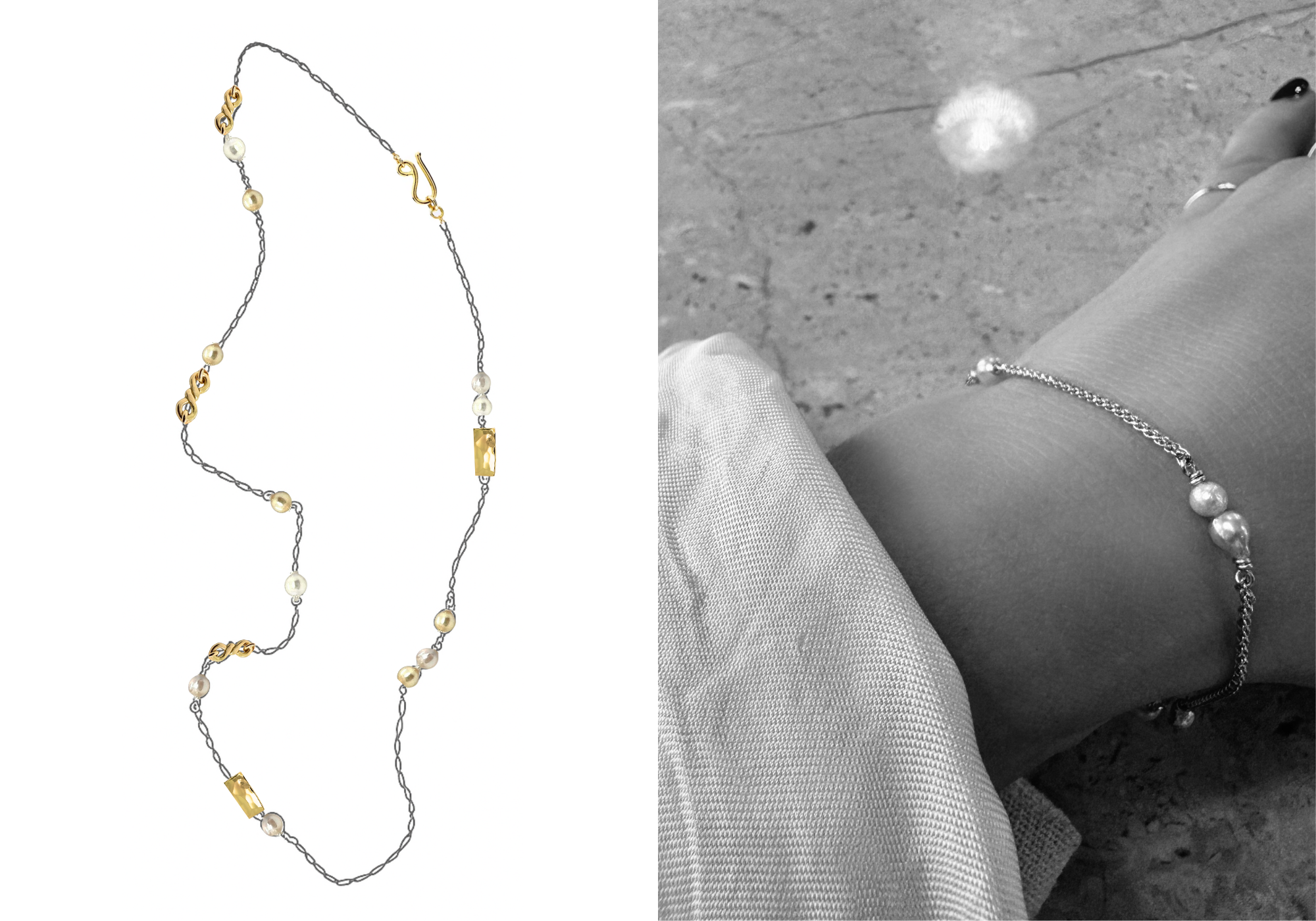 Armbånd med små blå-grå Akoya perler, Unika