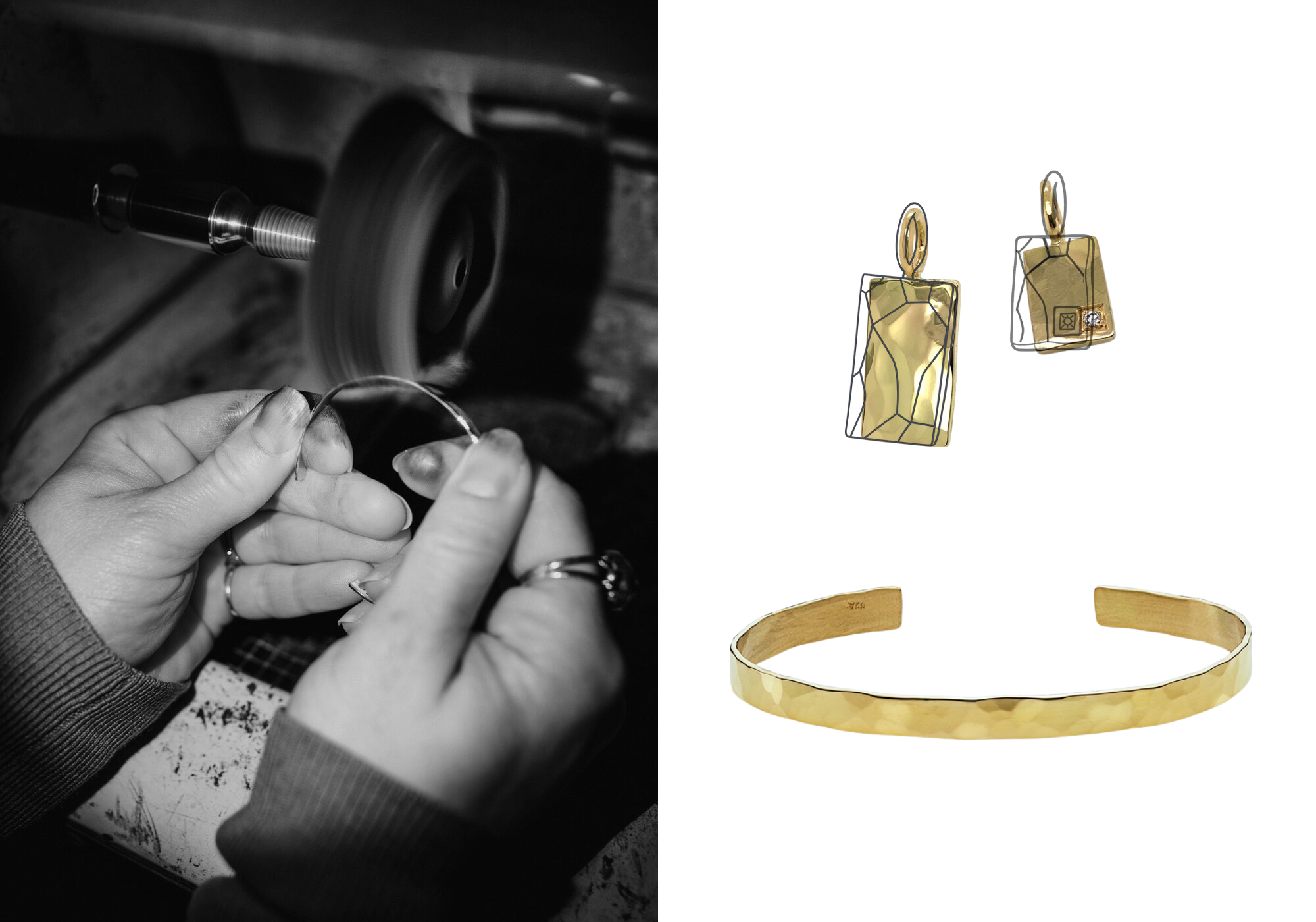 Vielsesringe, sæt No.3, hammerslået med tre diamanter