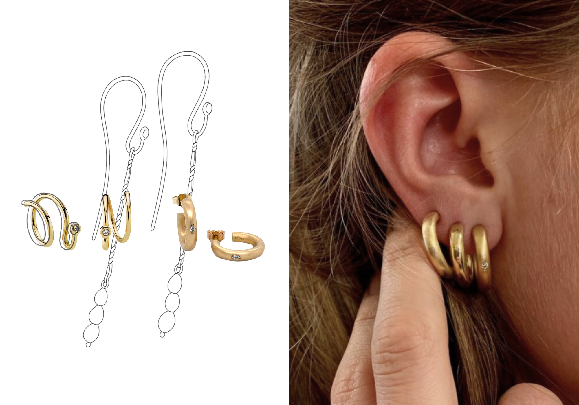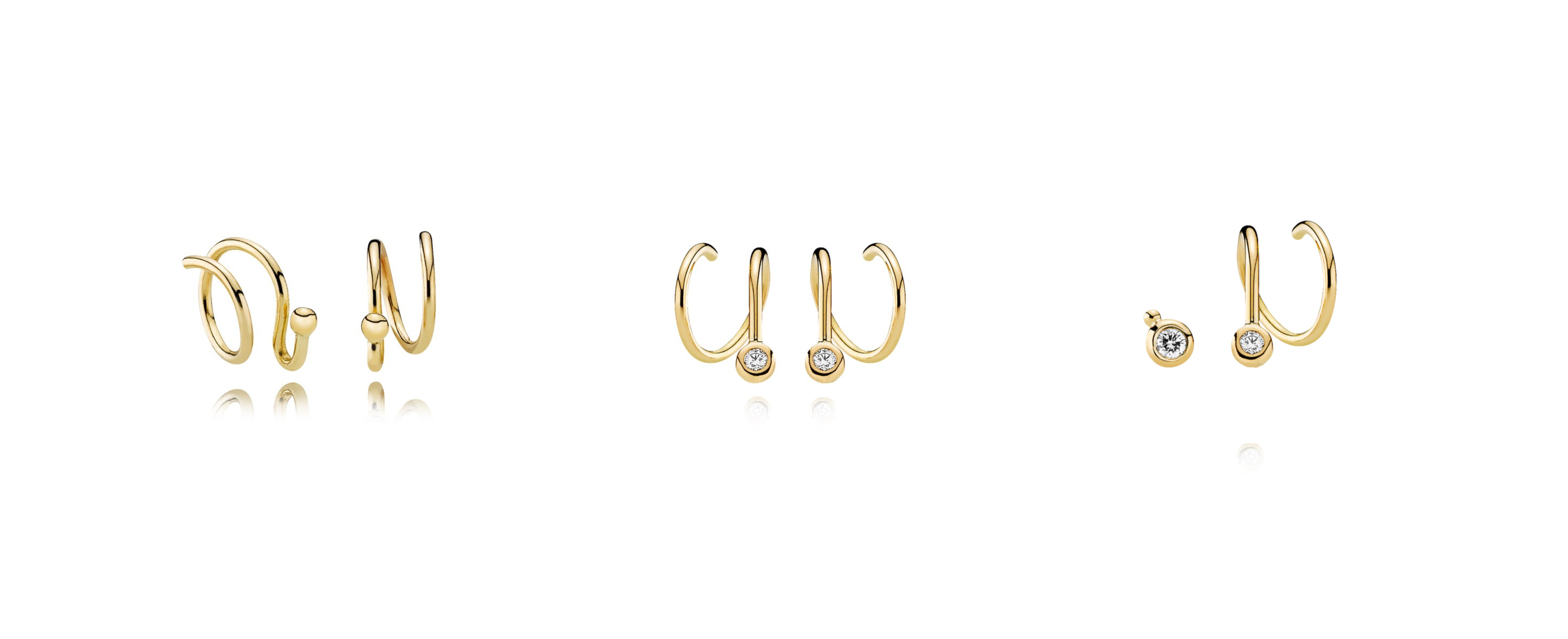 Dobbeltdrejet ørering i guld med krog og diamantkugle