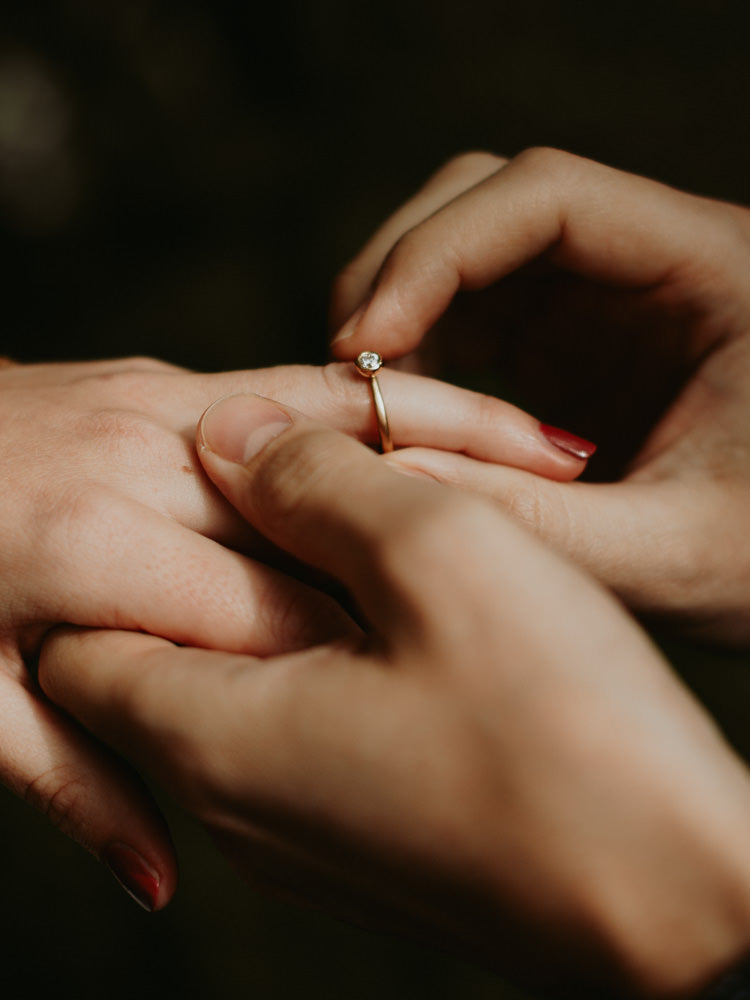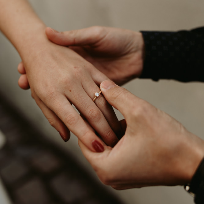 Forlovelsesringen vil hele livet være symbol på og mindet om jeres start på en fælles historie. Derfor skal den føles speciel og særlig.Traditionelt er en forlovelsesring en guldring med én diamant, men der er ingen regler.