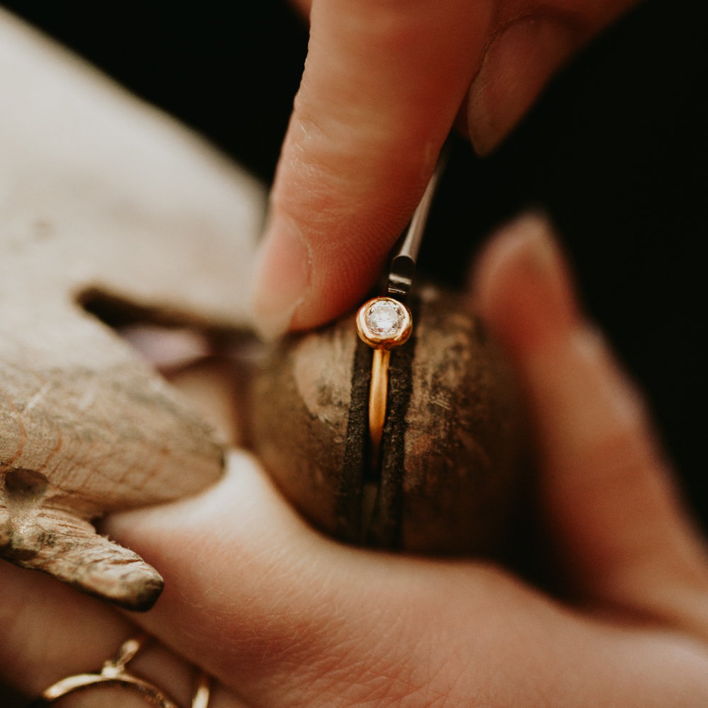 Jeg håndlaver den personlige ring efter dine ønsker og sætter en ære i, at guide dig til de rigtige beslutninger. Mulighederne er mange, men kunsten er at lave en ring for livet.